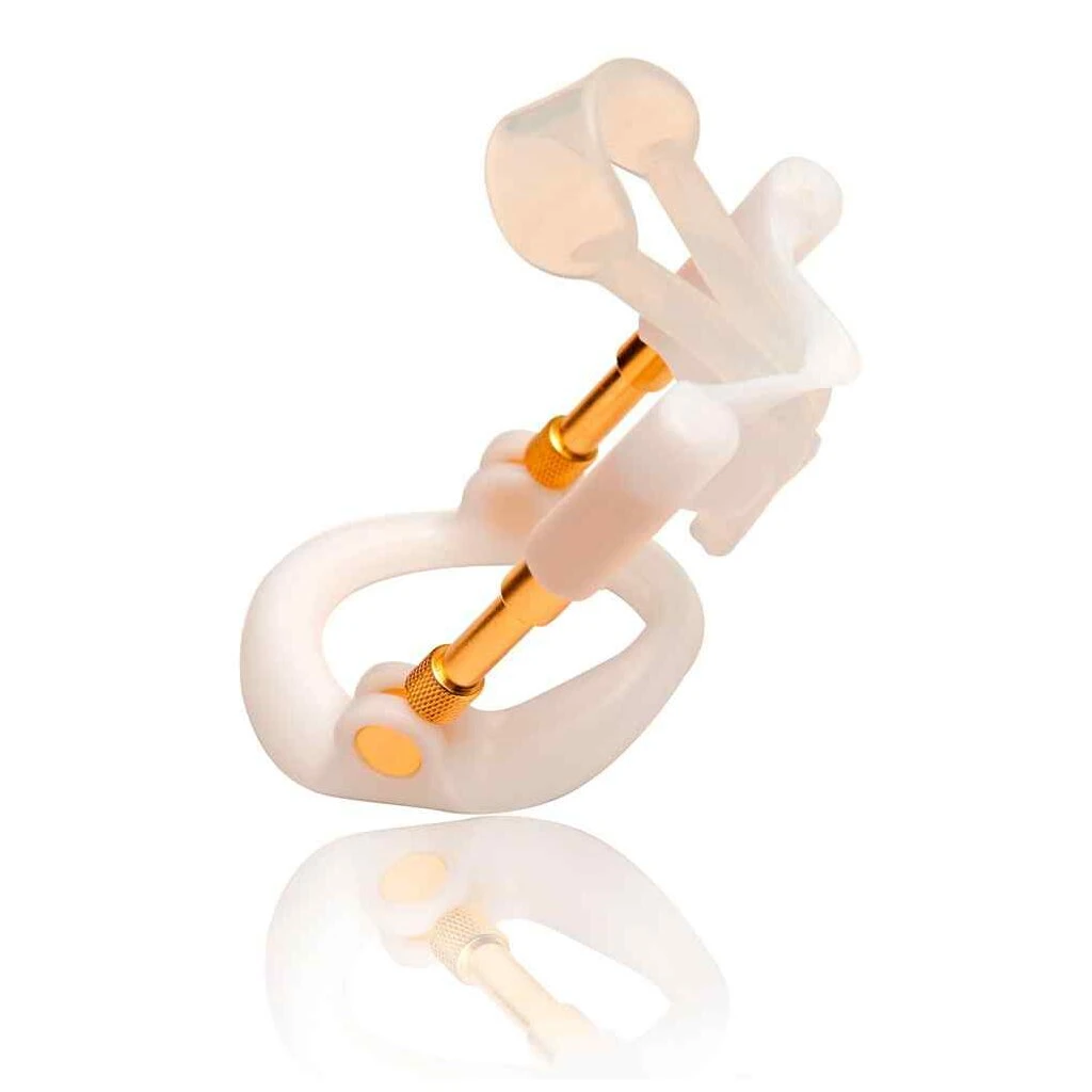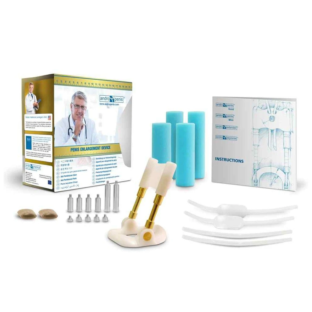 Der Penisstrecker AndroGold funktioniert nach dem Prinzip der sanften Dehnung. Die Spannvorrichtung ist diskret unter der Kleidung tragbar und so in den ganz normalen Tagesablauf integrierbar. Laut Hersteller sind bis zu 0,4 cm Zuwachs im Monat möglich. Einfach Anwendung. Material: Kunststoffteile aus POM, Silikonband, Metallschienen mit dünner Goldbeschichtung. Komplett mit Zubehör und Gebrauchsanleitung in Kurzform. Ausführliche Informationen über den eingedruckten QR-Code.