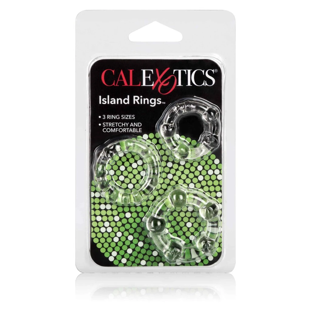 Läute die Veränderungen mit den exotischen Island Rings ein. Das Trio der dehnbaren Erektionsverstärker gibt dir die volle Kontrolle über dein Stehvermögen und dein Stimulationsvergnügen. Die kleinen, mittleren und großen Allzweckpimmelringe sind für ausgedehnte Intimspiele und spontane Befriedigung konzipiert. Die Ringe bestehen aus weichem, glattem und flexiblem, transparentem TPR und sind mit sinnlichen Lustperlen und Stimulationsknoten verziert, die für eine erhöhte orgasmische Sensibilität sorgen.