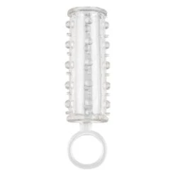 Der Sensation Enhancer ist eine super enge, offene Verlängerungshülse mit einem sinnlichen Perlenschaft. Der überdimensionale Enhancer wickelt sich eng um Dein Lustwerkzeug, um Umfang, Länge und Vergnügen zu steigern. Während Du Deinen Liebhaber mit dem vergrößerten Umfang und den stimulierenden Perlen erregst, sorgt die kraftvolle Erektionsunterstützung und das offene Design des Enhancers für explosive Ergebnisse für Euch beide. Das extrem dehnbare Material und die geräumige Kammer des erotischen Enhancers passen selbst dem größten Mann. Die strukturierte Kammer und der eingebaute Hodensackriemen sorgen für eine verstärkte Stimulation und kraftvolle Unterstützung. Hülle Dein Lustwerkzeug in diese super dehnbare Hülle, um Ausdauer, Stimulation und Orgasmusvergnügen zu steigern. Der flexible Enhancer ist aus hygienisch hochwertigem TPE gefertigt. Dieses körperverträgliche Material ist unparfümiert und frei von Phthalaten, damit Deine empfindlichsten Stellen gesund und munter bleiben.