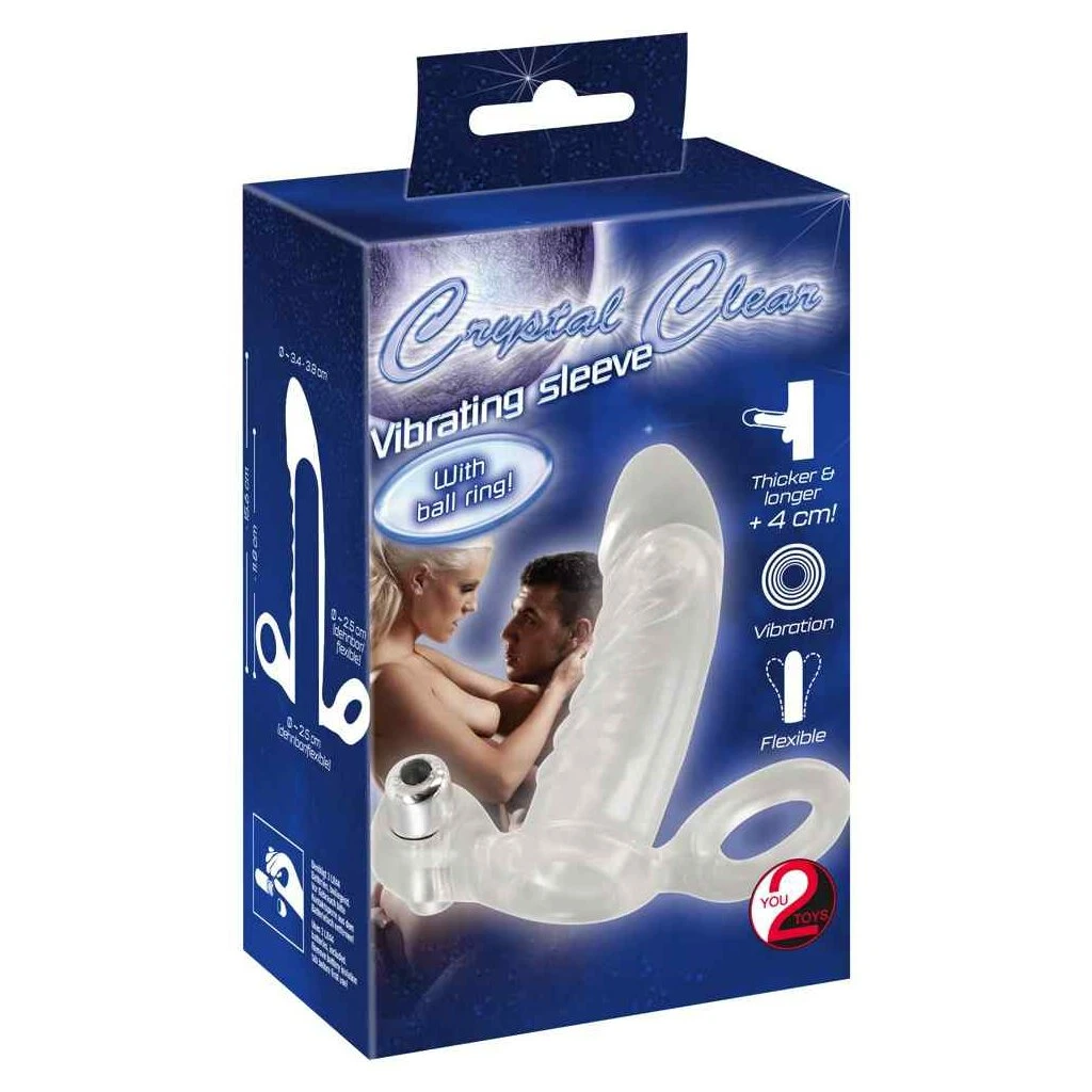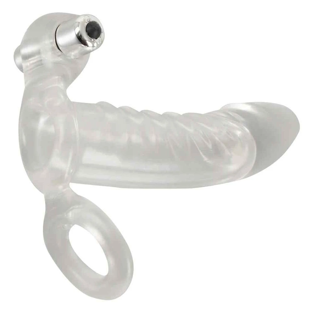 Diese transparente Penishülle aus weichem Stretchmaterial bringt den Penis in Topform für ausfüllendes Verwöhnen. Die eng sitzende, erektionsunterstützende Hülle wird einfach über das erigierte Glied gestreift und sorgt dank Hodenring für festen angenehmen Sitz ohne Abrutschen. Dank der Materialstärke und der ausgeprägten Reizstruktur ist der Penis im Umfang vergrößert und dank der festen ausgeformten Eichel verlängert. Das kleine, kraftvolle Vibrobullet wird in die obere Schlaufe eingesetzt und sorgt für aufregende Zusatzstimulationen. Inklusive Batterien (3 x LR44) für das Vibrobullet.