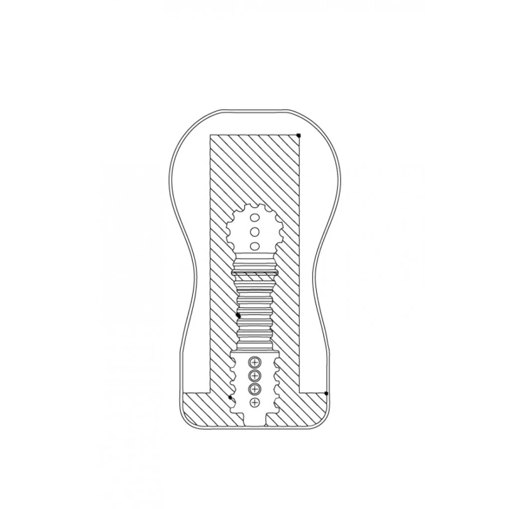 To use, remove the lid on top of it and slide your cock together with some lubricant into the silicone chamber. The stretchy silicone with stimulating ridges will not only feel comfortable tight it also massages and stimulates your shaft.
