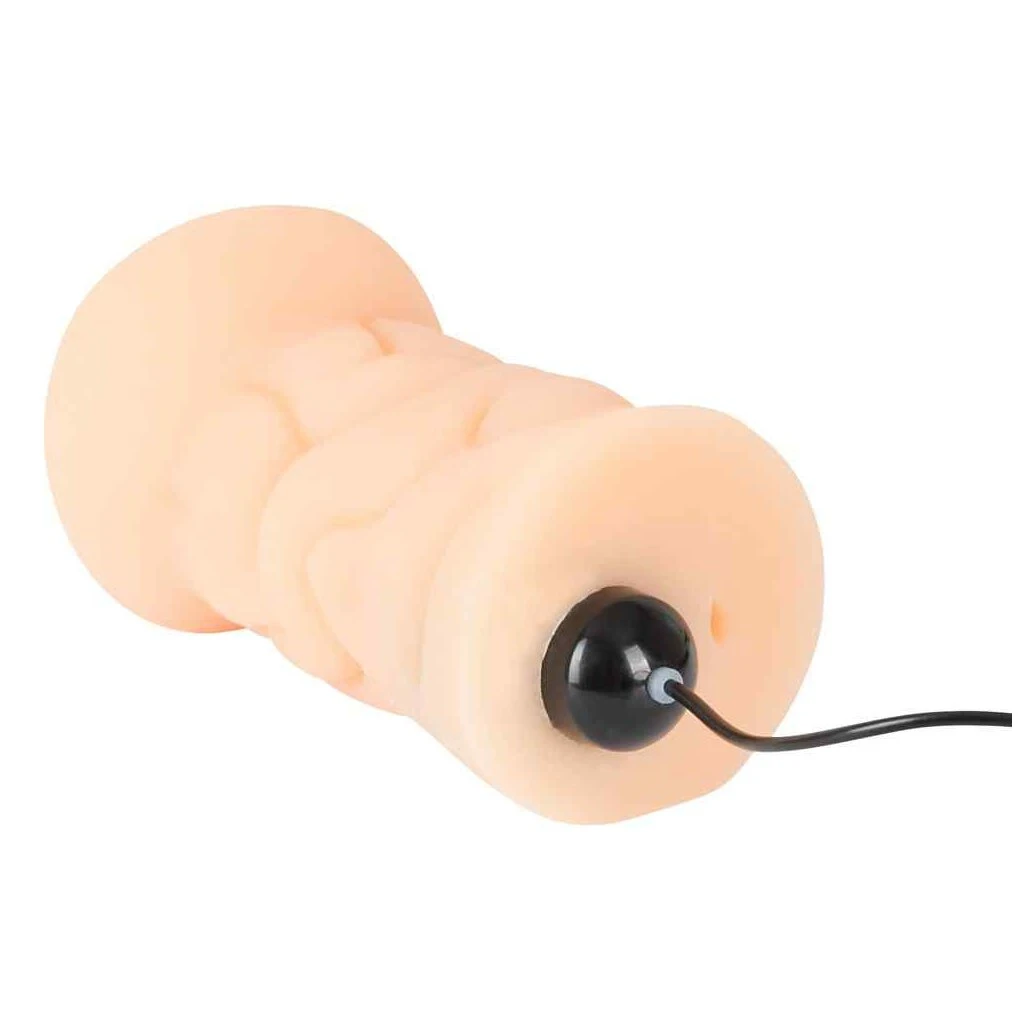 Dieser hautfarbene Masturbator beglückt sein bestes Stück mit realistischer Vagina-Öffnung, die mit ausgeprägten Schamlippen lockt, sowie mit beidseitig offenem Lustkanal mit facettenreicher Reizstruktur. Als prickelndes Highlight erweist sich aber das entnehmbare Vibro-Bullet, das über 10 abwechslungsreiche Modi verfügt und ganz einfach per One-Button steuerbar ist. Inklusive Fernbedienung (an 74,5 cm langem Kabel). Gesamtlänge 17 cm, Ø extrem dehnbar. Bullet-Länge 5 cm, Ø 2,5 cm. Material: TPR, ABS. Batterien bitte extra bestellen: 3 x AAA.