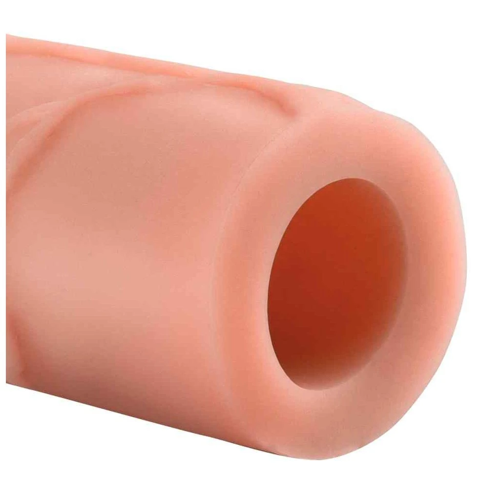 Penishülle mit starker Äderung und fest ausgepolsterter Eichel, die den Penis um 5,1 cm verlängert. Verdickt den Penis um grandiose 66 % und sorgt gleichzeitig für Erektionsunterstützung. Kann individuell angepasst werden.