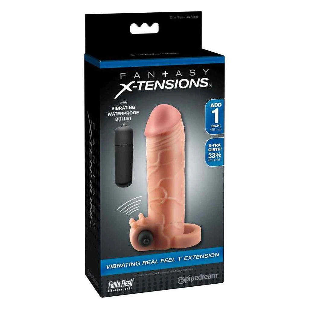 Diese Penishülle aus hautähnlichem, weichem Stretchmaterial (Fanta Flesh) bringt den Penis in Topform für ausfüllende Lustmomente. Die eng sitzende, erektionsunterstützende Hülle wird einfach über das erigierte Glied gestreift und sorgt dank Hodenring für festen angenehmen Sitz ohne Abrutschen. Dank des prächtigen Außendurchmessers ist der Penis im Umfang um 33% vergrößert. Und die massive Eichel verlängert um 2,5 cm! Das kleine, kraftvolle Vibrobullet wird in die obere Schlaufe eingesetzt und sorgt für aufregend prickelnde Zusatzstimulationen. Auch in Badewanne oder Dusche, da wasserdicht! Inklusive Batterie (3 x LR44) für das Vibrobullet.