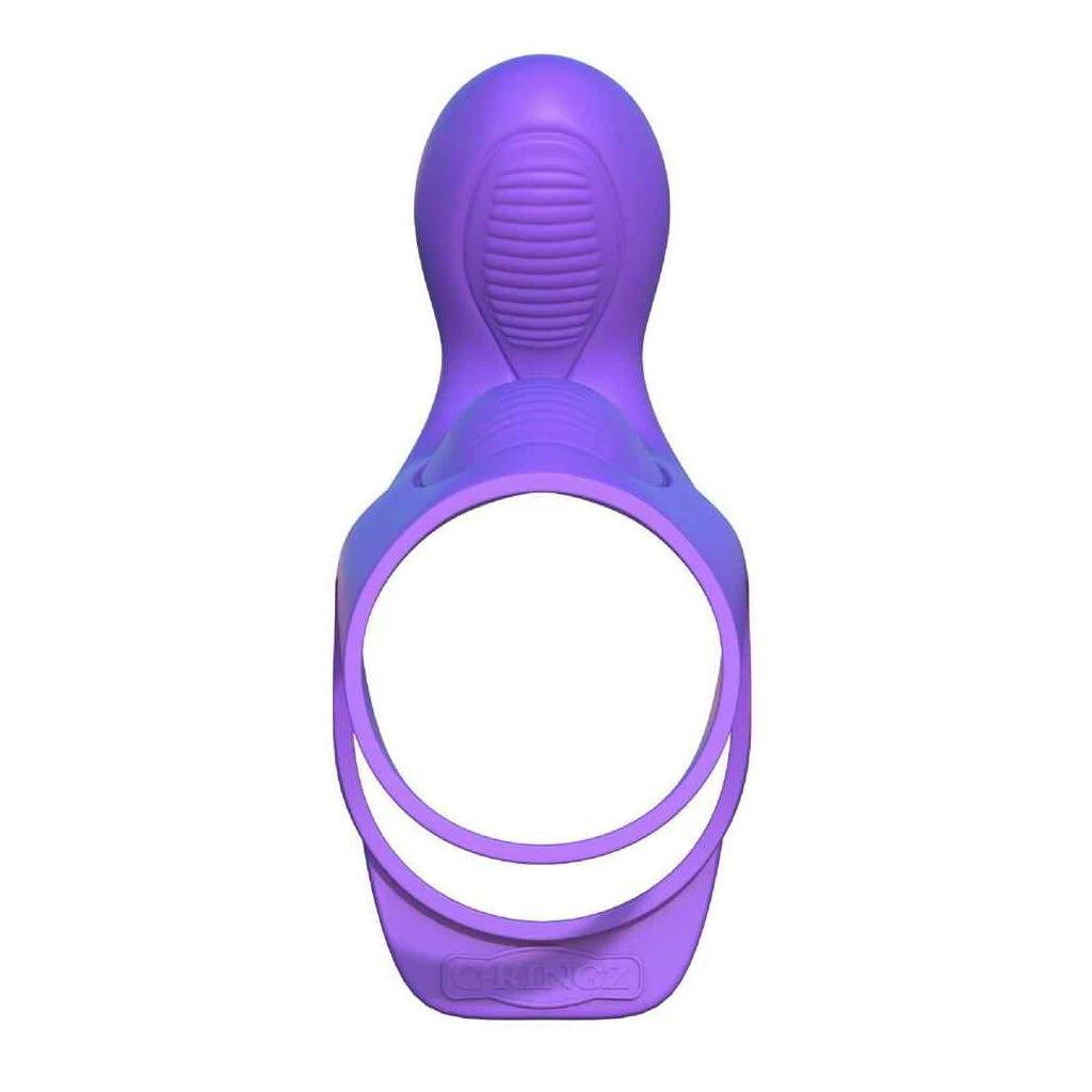Penismanschette mit Hodenring und Klitorisstimulator aus weichem flexiblen Silikonmaterial. Mit Vibration in den mit Reizrillen versehenen Partien am flexiblen Klit-Reizer und oben in der Penismanschette, die mit der kabelgebundenen Fernbedienung in 5 Modi bequem steuerbar ist. Inklusive Batterien.