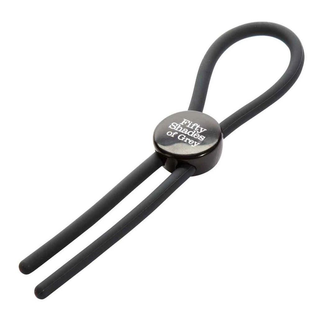 Graue Penisschlaufe mit Schiebeverschluss, mit dem der Durchmesser individuell eingestellt werden kann – auch während des Sex. Gesamtlänge ca. 29 cm. Material: Silikon.