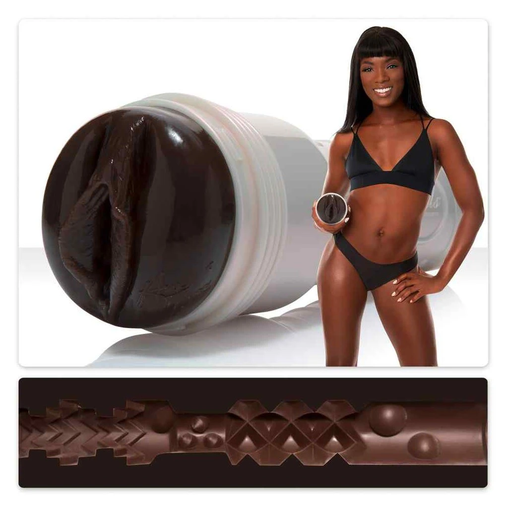 Masturbator mit Vagina-Öffnung im perlmuttfarbigen Gehäuse. Mit Orginalabdruck der Intimzone von Erotikstar Ana Foxxx. Im Inneren des Lustkanals schaffen unterschiedlich große Noppen, Lamellen und Rillenstrukturen eine stimulationsintensive Oberfläche. Mit Abdeckkappe und Unterschrift des Stars neben den Schamlippen. Superskin Textur.