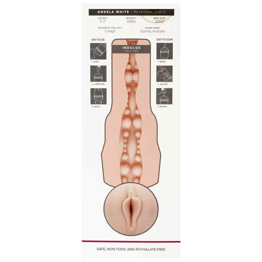 Dieser hautfarbene Masturbator ist eine getreue Nachbildung der Vagina von Angela White – mit Unterschrift von Angela auf dem Masturbator. Genießen Sie den unterschiedliche stark genoppten Lustkanal, der Ihre Lustnerven bei Reibung bis zum spritzigen Höhepunkt führt. Zur anschließenden Reinigung können Sie den Sleeve ganz einfach aus der perlmuttfarbenen Dose herausnehmen.