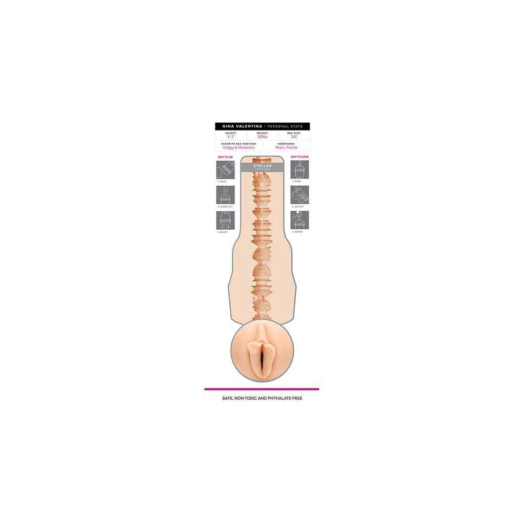 Griffiger Masturbator Gina Valentina Stellar von Fleshlight in diskreter Taschenlampen-Optik mit original abgeformter Vagina-Öffnung von Erotikstar Gina Valentina. Und auch das sehr abwechslungsreich strukturierte Innenleben mit verschiedenen Durchmessern kommt der engen Vagina von Gina ganz nah und sorgt für eine intensive, orgasmuswirksame Massage beim Handjob. Die Innensleeve aus hautähnlichem super softem Material ist neben der Öffnung mit einem Autogramm von Gina versehen und lässt sich zur Reinigung leicht aus dem Masturbator entnehmen.