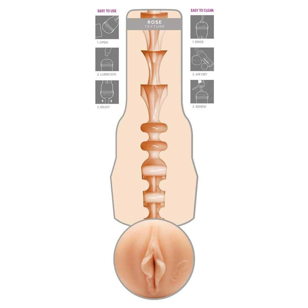 Masturbator Alina Lopez Rose von Fleshlight mit original abgeformter Vulva/Vagina des Erotikstars. Und auch das sehr abwechslungsreich strukturierte Innenleben kommt dem engen Lustkanal von Alina ganz nah und sorgt für eine intensive, orgasmuswirksame Penismassage beim Handjob. Diese Ausführung mit der Fleshlight-Struktur Rose hat eine besonders enge Öffnung.