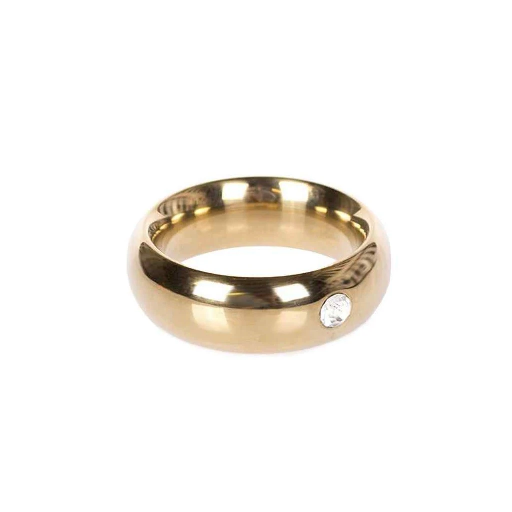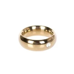 Dieser goldpolierte Donut-Cockring hat einen schönen klaren Stein, so dass er wie ein echtes Juwel aussieht. Hergestellt von Kiotos Steel.