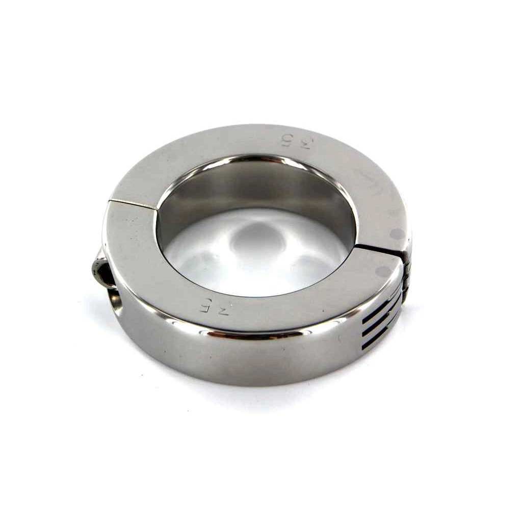 Dieser extra schwere Metallring schließt sich um die Spitze der Hoden und dehnt und beschwert sie für ein komplettes Gefühl der Erregung. Der dicke Ring verhindert, dass die Hoden bei der Ejakulation aufsteigen, was das Vergnügen noch länger hinauszögert.