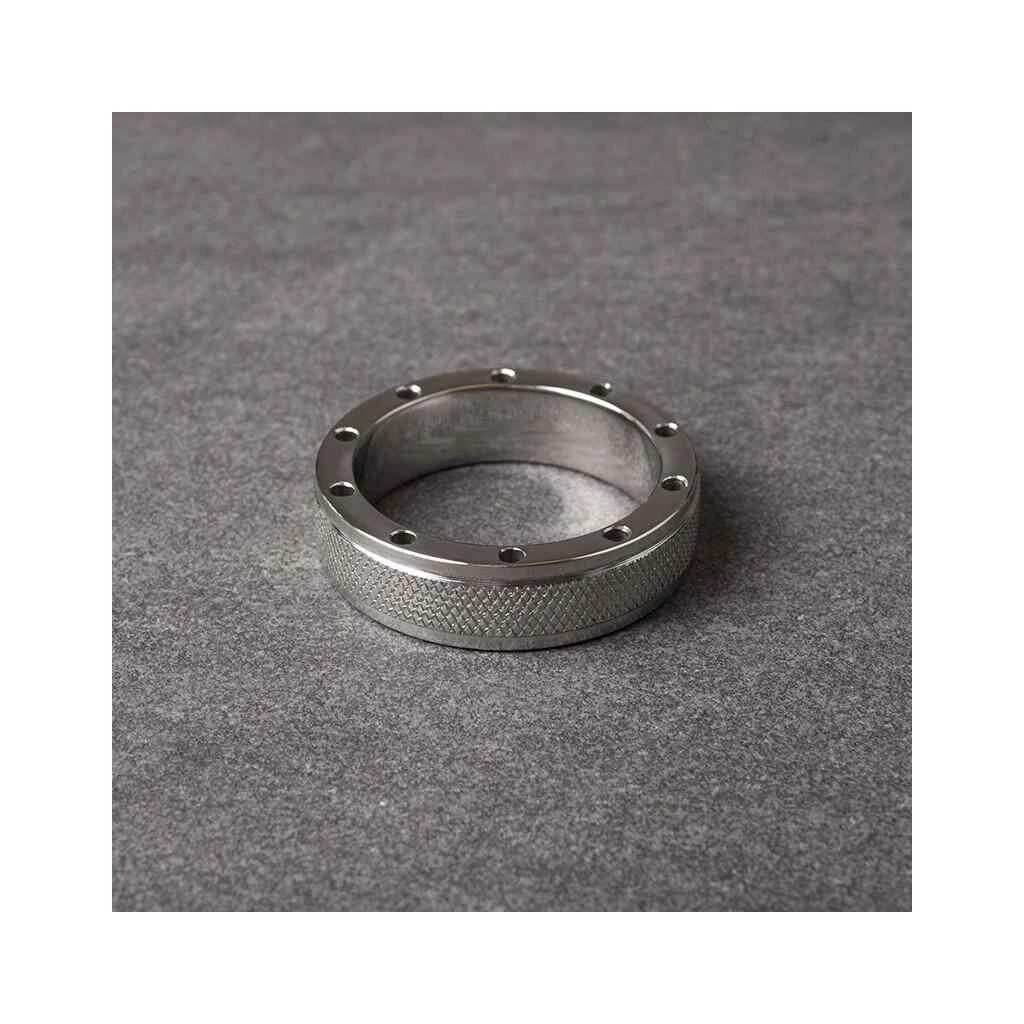 Dieser industriell aussehende Cockring ist sehr robust und hat ein spezielles Design mit einer stabilen Rippe, die ihm mehr Grip verleiht, und kleinen Löchern, die den Cockring leichter machen als seine Gegenstücke.
