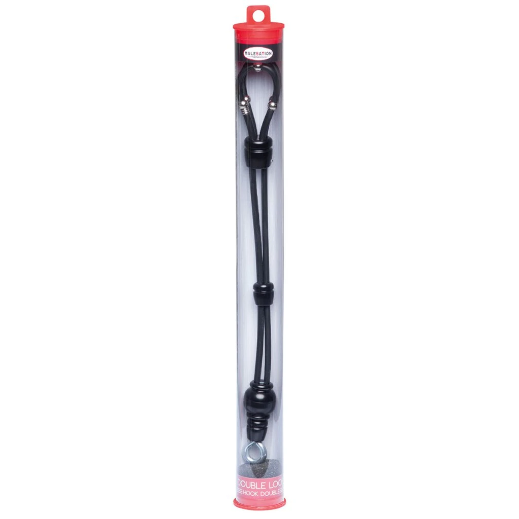 Ziehen Sie die obere Hülse nach unten und halten Sie die gerippten Ringe mit zwei Fingern fest, dann ziehen Sie die Schlaufen nach oben. Führen Sie den steifen Penis durch die Schlaufen und ziehen Sie die Manschette nur so fest an, dass kein Schmerz entsteht. Wenn Sie zu viel Druck spüren oder der Penis blau anschwillt, ziehen Sie die Rippenringe mit der Schlaufe einfach nach links und rechts hoch. Dann legen Sie die Hodenschlaufe über den Hoden und ziehen die untere Manschette mit Gefühl nach oben.