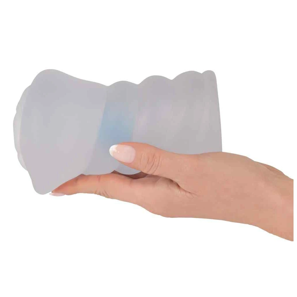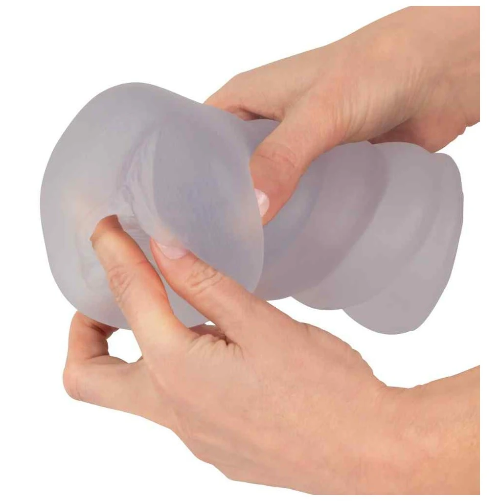 Transparenter Masturbator in Vagina-Optik. Der griffige, dehnbare Masturbator aus hautähnlichem Material ist innen mit ausgeprägten Stimulationsrillen und -noppen versehen, die für eine intensive, orgasmuswirksame Massage beim Handjob sorgen. Der integrierte dehnbare Penisring im Inneren nimmt dabei das beste Stück schön eng „in die Zange“ für ein intensiv zupackendes Gefühl. Der Masturbator ist zur leichten Reinigung hinten ebenfalls offen.