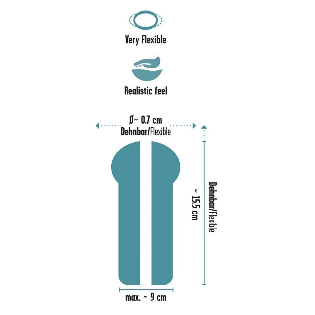 Gesamtlänge 15,5 cm, Außen-Ø 7 cm, Innen-Ø eng und dehnbar. TPE.