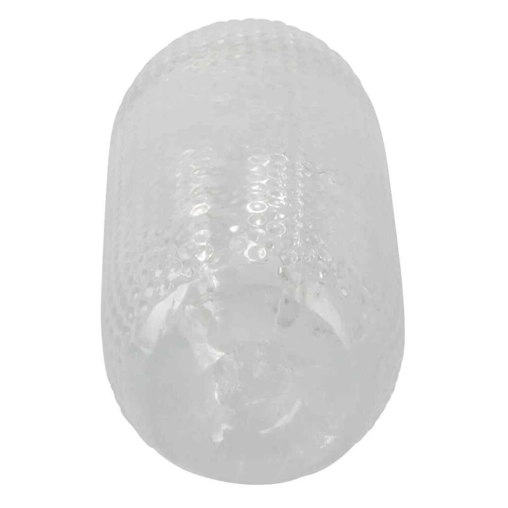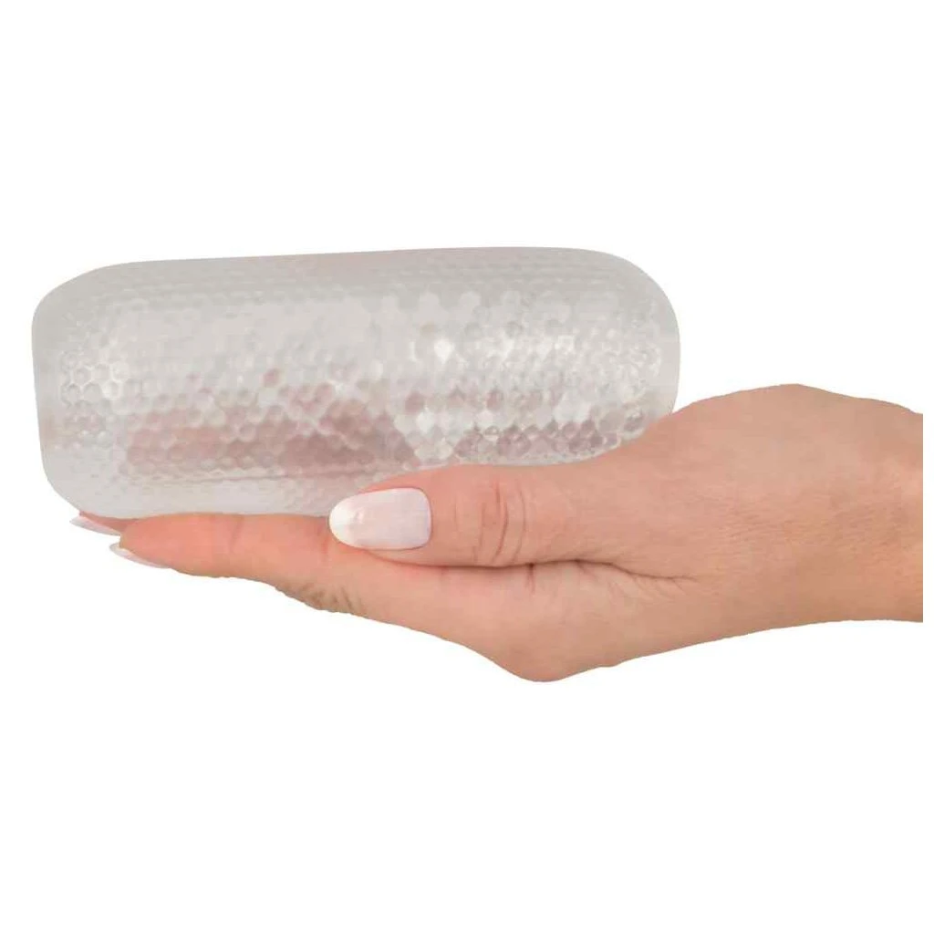 Extra handlicher, transparenter Masturbator mit aufregender Waben- und Noppen-Struktur im Inneren. Der dehnbare Masturbator besitzt auch außen eine genoppte Oberfläche, damit er auch bei wilderem Auf und Ab nicht wegrutscht.