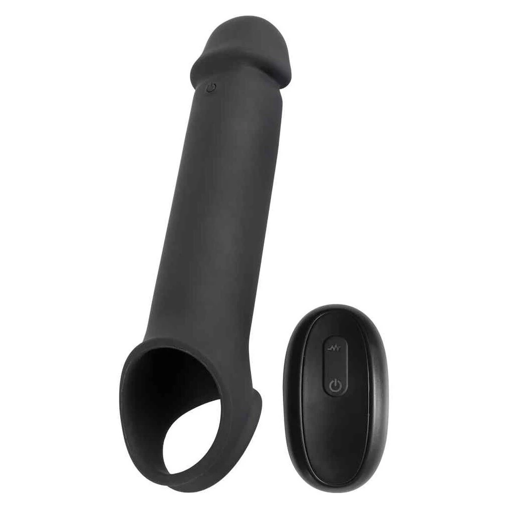 Diese dehnbare Penishülle mit hautfreundlicher Soft Touch Textur bringt den Penis in Topform für ausfüllende Lustmomente und die massiv ausgepolsterte Eichel verlängert ihn sogar um 8 cm. Die eng sitzende, erektionsunterstützende Hülle wird einfach über das Glied gestreift und sorgt dank Hodenring für festen angenehmen Sitz ohne Abrutschen. 10 vielseitige Vibrationsmodi sind bequem mit der kabellosen Fernbedienung steuerbar – dank einer Reichweite von bis zu 12 Meter auch vom Partner. Wiederaufladbar – inklusive USB-Ladekabel und Batterie (27A) für die Fernbedienung.