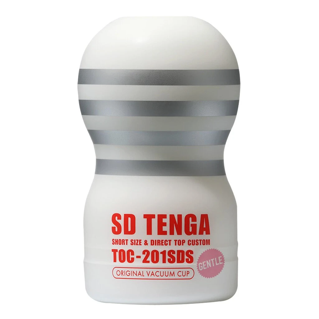 Der Masturbator SD Original Vacuum Cup von Tenga in diskretem Design-Cup jetzt als SD-Version (Short Size & Direct Top Custom) im noch kleineren handlichen Format für einen bequemen Top-Handjob mit intensiver Eichelstimulation. Geeignet für alle Penisgrößen/-längen.