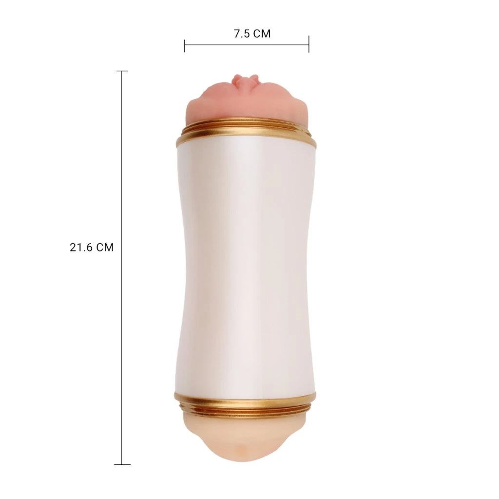 MX 2-in-1 Vagina und Mund Masturbator Marke von Chisa Novelties. Der Vagina- und Mund-Masturbator ist ein diskreter Masturbator, der in einem Schlauchbecher mit einem Plug auf jeder Seite versteckt ist. Sieht realistisch aus und fühlt sich auch so an, mit seinem vaginalen Ende auf der einen Seite und seinem mundförmigen Ende auf der anderen Seite. Das TPE-Material fühlt sich extrem weich und flexibel an und passt sich der Größe Ihres Penis an. Der strukturierte Innenschaft ist mit stimulierenden Reliefnoppen versehen und lässt sich zur einfachen Reinigung aus der äußeren Schale herausnehmen. Wasserdicht, Sie können ihn in der Badewanne oder unter der Dusche verwenden.