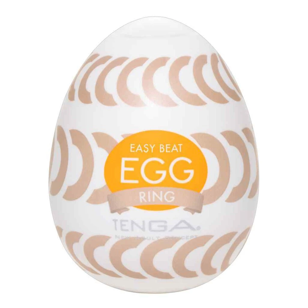 Kompakter Einmal-Masturbator Egg Ring von Tenga mit Rillenringe-Reizstruktur im Inneren. Die ultra flexible Masturbator-Sleeve befindet sich in der eiförmigen Hülle und wird zusammen beim Handjob mit dem beiliegenden Gleitgel verwendet.