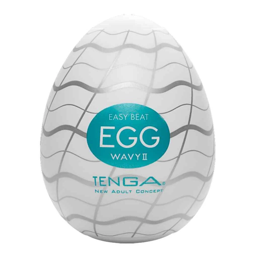 Kompakter Einmal-Masturbator Egg Wavy II von Tenga mit spannender, neu überarbeiteter Wellen-Reizstruktur im Inneren. Die ultra flexible Masturbator-Sleeve befindet sich in der eiförmigen Hülle und wird zusammen beim Handjob mit dem beiliegenden Gleitgel verwendet.