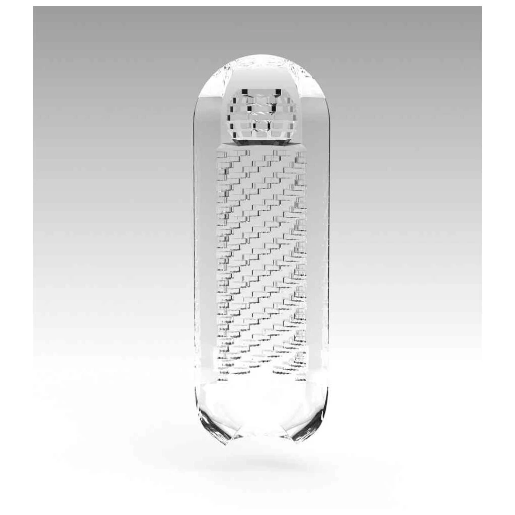 Transparenter, wiederverwendbarer Masturbator mit integrierter Spule, die bei Penetration den Masturbator ins Drehen versetzt (Internal Coil Mechanism). Ausgeprägt reizstrukturierter Lustkanal.