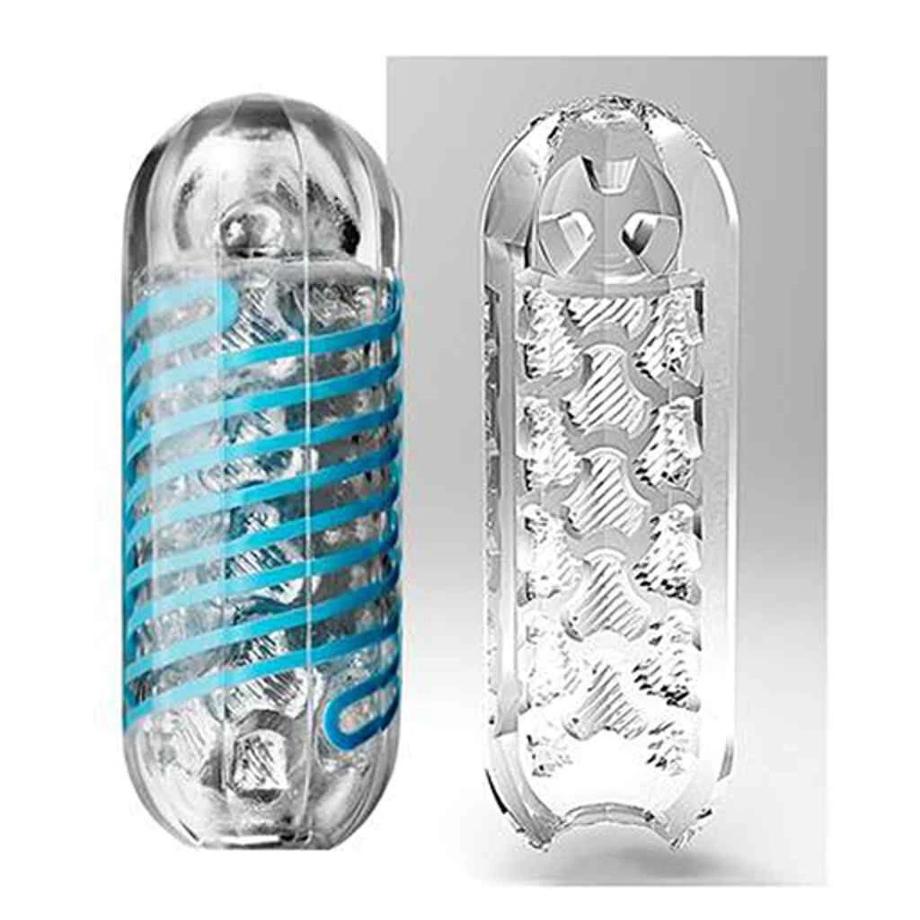 Transparenter, wiederverwendbarer Masturbator mit integrierter Spule, die bei Penetration den Masturbator ins Drehen versetzt (Internal Coil Mechanism). Ausgeprägt reizstrukturierter Lustkanal.