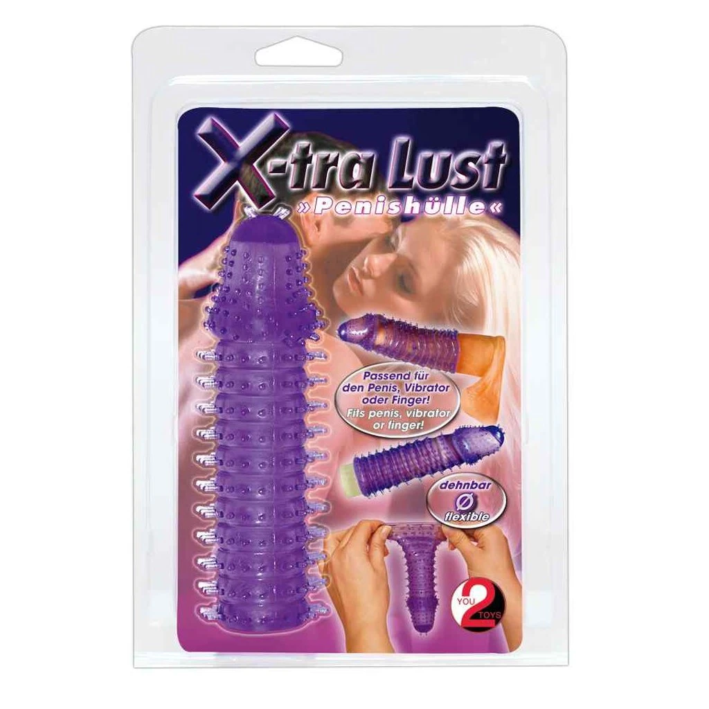 Diese anschmiegsame Lusthülle aus lilafarbenem, silikonähnlichem Material ist stark dehnbar und lässt sich somit über jeden Penis und jeden Vibrator streifen. Durch die unzähligen Reiznoppen wird das Vorspiel zum wahren Genuss!
