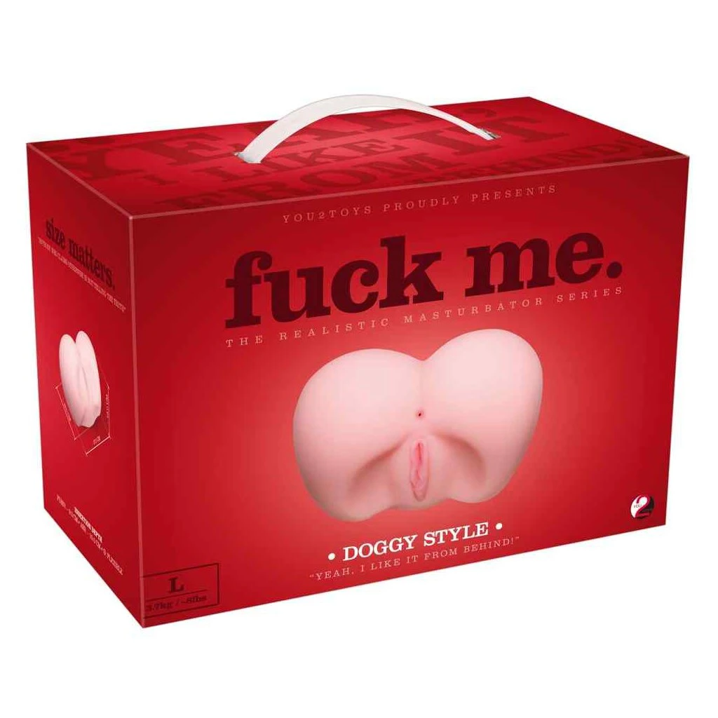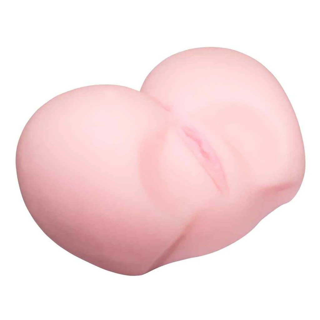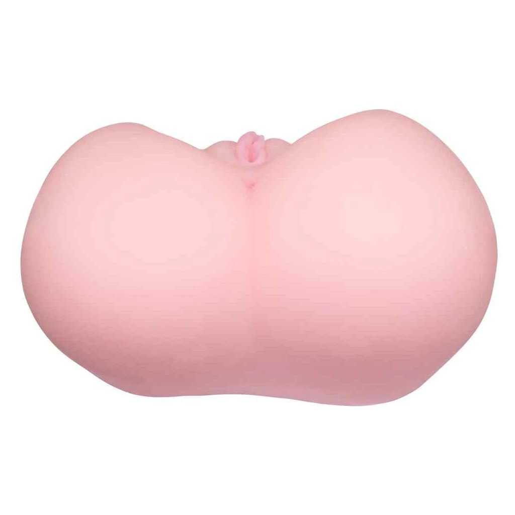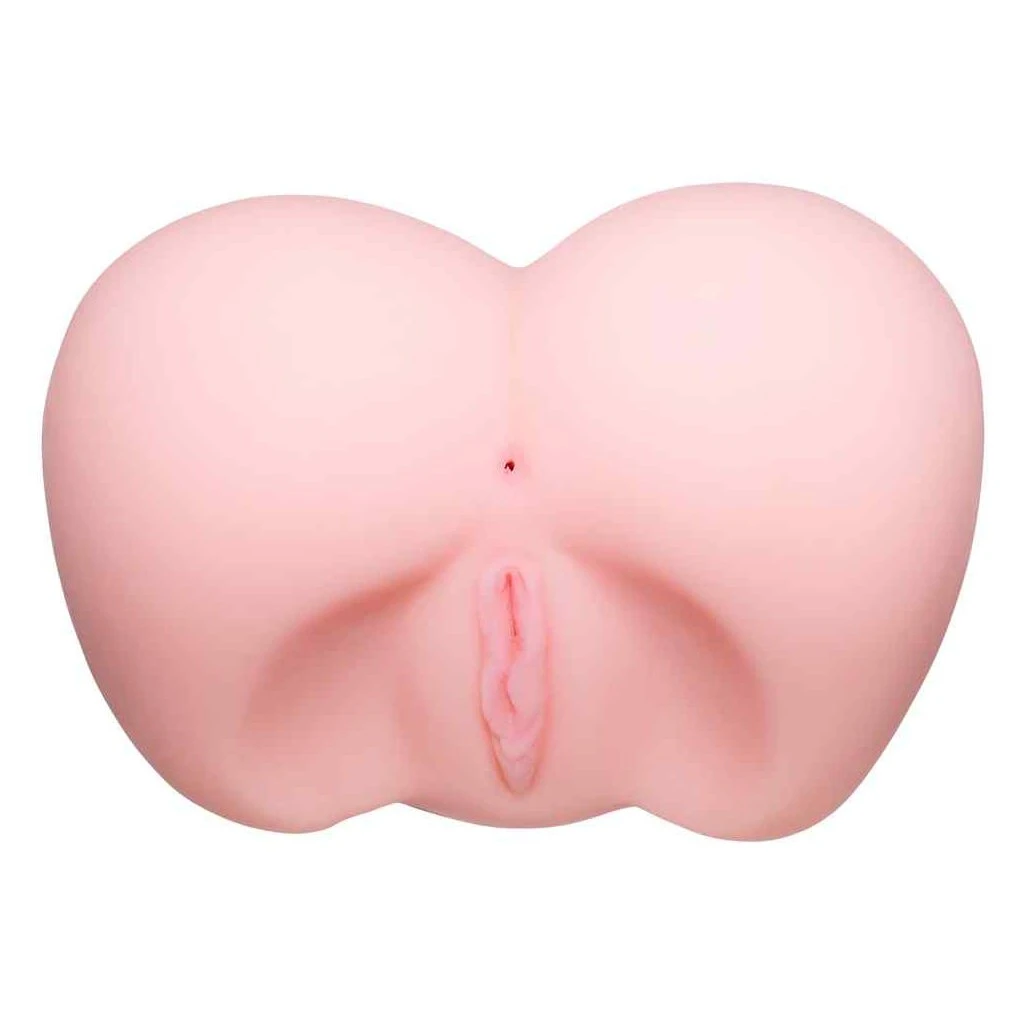 Hautfarbener Masturbator im Po-Design mit detailgetreuer Vagina- und Anusöffnung mit beidseitig offenen Lustkanälen: Vaginakanal innen genoppt (9 cm tief), Anuskanal innen gerillt (10 cm tief).